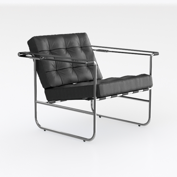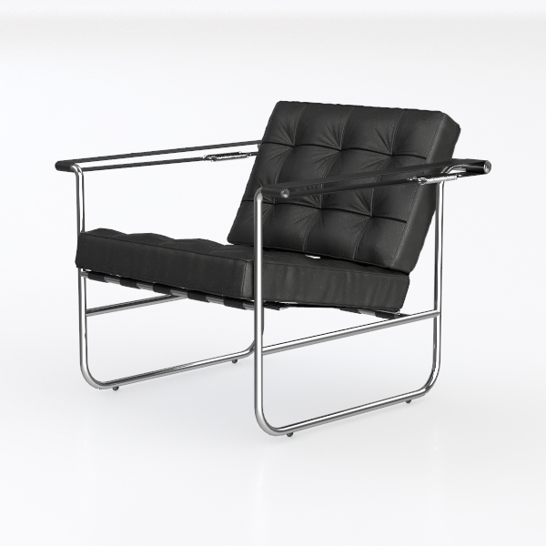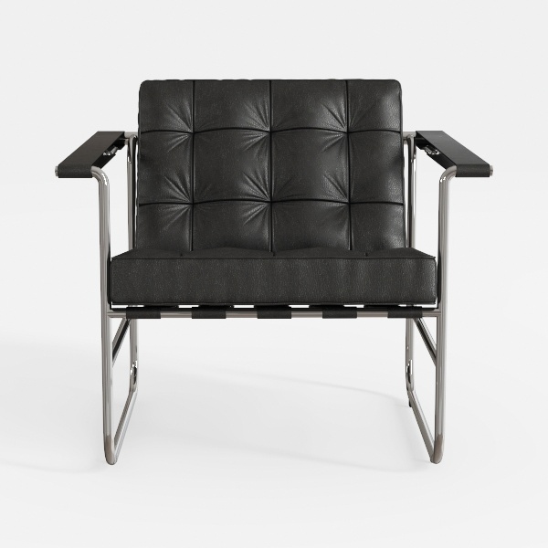 Rooted in mid-20th century modernist design, blending Bauhaus minimalism with functional artistry, this piece features high-gloss black leather upholstery with tufted details—smooth, tactile, contrasting the sleek chrome metal frame. Ideal for a contemporary living room, pairing beautifully with marble/wooden tables, elevating spaces with industrial edge and timeless elegance, while generous seat depth and angled backrest ensure exceptional comfort.