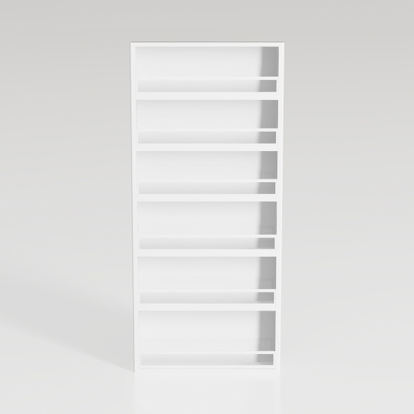 Inspired by minimalist design, this white shelf boasts a sleek, matte surface that radiates clean, uncluttered elegance. Light and airy, it creates a sense of openness. Perfect for modern living rooms or home offices, complementing wooden accents or black metal details. Multiple even shelves offer ample storage for books, decor, or plants, blending function and style seamlessly.