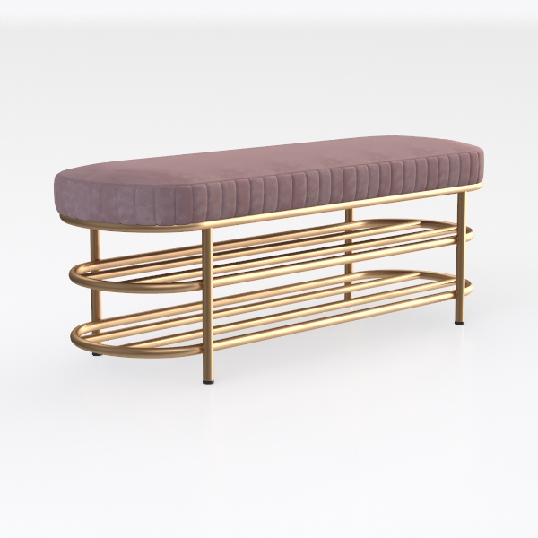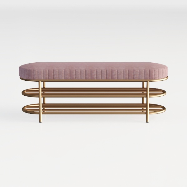 Inspired by mid-century modern elegance, this piece features soft, plush pink upholstery offering a warm tactile feel, with polished gold frame adding opulence. Ideal for modern minimalist or luxury living rooms, it pairs beautifully with marble/wooden coffee tables and metallic floor lamps, enhancing sophistication. The generous oval seat ensures comfortable seating, and the double-tiered metal base adds subtle storage and stability, balancing style and function.