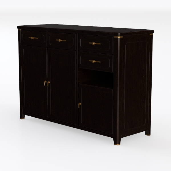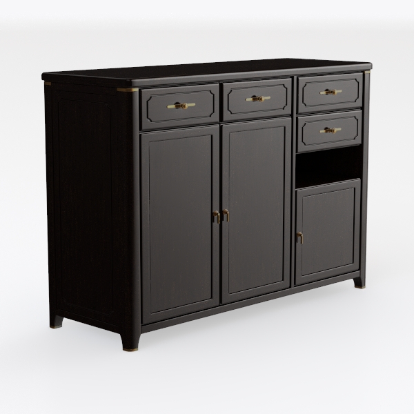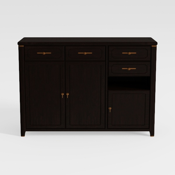 Inspired by mid-century modern minimalism, this cabinet blends clean lines with warm, rich dark wood grain. Its smooth, polished surface and subtle texture create a tactile, elegant look, catching light softly. Ideal for a modern classic living room or dining space, pair with marble top side tables and brass floor lamps. Spacious drawers and cabinets offer ample storage, while sturdy, slim legs add stability and sophistication.