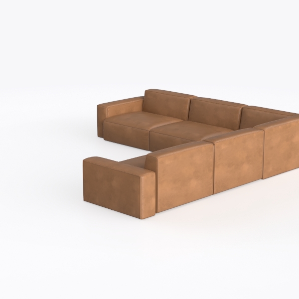 This L-shaped sofa merges thoughtful design with everyday comfort, rooted in a balance of organic warmth and architectural precision. Its aesthetic draws inspiration from natural materials—think the rich, weathered tones of premium leather and the clean lines of modern furniture design—creating a piece that feels both timeless and contemporary.