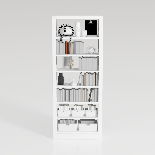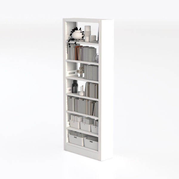 5-Tier Bookshelf, White Bookshelf with Adjustable Storage Shelves, Metal Bookshelf, 69" Tall Bookcase for Living Room, Library, Office, Bedroom, Including Book Stopper,36" Wide Bookshelves