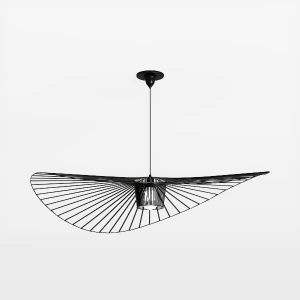 A 3D model of a chandelier, featuring black metal wire and a wing-shaped design, with a modern minimalist aesthetic. It has low polygon count and high detail, suitable for interior decoration like living rooms or dining areas.