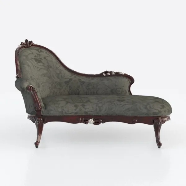 Inspired by the timeless craftsmanship of 18th-century European classical furniture, this chaise longue embodies refined elegance with its graceful silhouette and intricate detailing. The deep, richly grained wooden frame features delicate, hand-carved motifs—twisting vines and floral scrolls—polished to a smooth, warm luster that catches light softly, adding depth to its presence. Wrapped in a sumptuously textured gray fabric with subtle, tonal floral patterns, the generously padded seat and back cradle the body in plush comfort, balancing firm support with a gentle, yielding softness that invites relaxation.