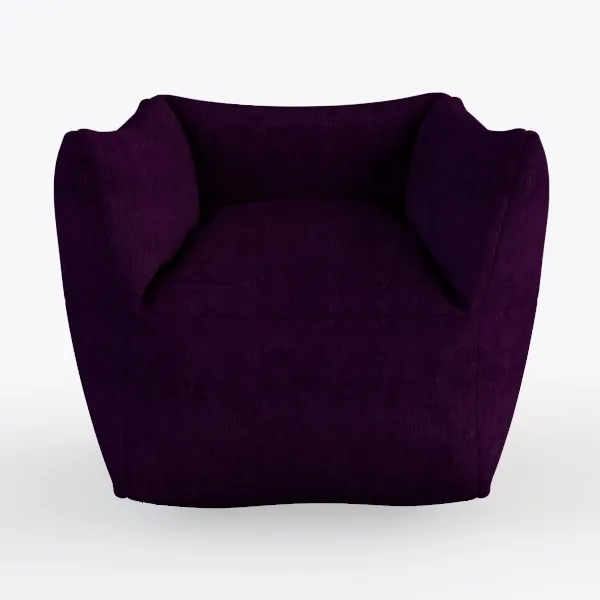 This elegant armchair embodies a blend of organic inspiration and modern minimalism, drawing cues from the deep, velvety allure of amethyst gemstones and the soft, flowing lines of blooming protea flowers. Its plush, eggplant-purple upholstery feels surprisingly tactile—like sinking into a cloud—with a rich, satiny texture that catches light gently, creating subtle depth. The silhouette is intentionally rounded, with a cloud-like shape that softens sharp edges, making it visually soothing and inviting.