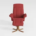 Visually, the bold red hue adds a lively focal point to any room, contrasting beautifully with the warm, natural wood of its cross-legged base, which feels grounded yet light. It’s equally at home in a contemporary living room, paired with a marble-topped side table and a neutral-toned sofa, or in a cozy reading nook, flanked by floor-to-ceiling bookshelves. The integrated footrest mechanism allows for effortless adjustment: tilt back to stretch out, or sit upright to chat, and the contoured backrest cradles your spine, while the wide armrests provide a natural resting spot for elbows. Whether you’re unwinding after work or enjoying a lazy weekend morning, this chair balances style and functionality, making it a versatile staple for any home.