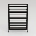 Inspired by minimalist industrial aesthetics, this multi-tiered rack merges clean lines with practical purpose. Its sleek black metal frame and matte dark shelves create a cool, textural contrast, radiating a calm, organized feel. Ideal for modern minimalist living rooms or home offices, it pairs well with wooden accents and warm lighting. Spacious tiers and rolling casters ensure easy movement and efficient storage for books, decor, or daily items.