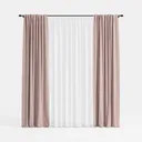 A 3D model of a Double Curtain, featuring pink striped fabric with a draped texture and minimalist modern aesthetic. It has low polygon count, high detail, suitable for home interior decoration and design visualization.