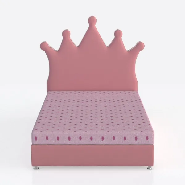Inspired by fairy tale princess themes, this bed features a soft pink upholstered headboard shaped like a crown, radiating a sweet, magical charm. The fabric feels smooth and cozy to the touch, with rounded edges adding a gentle, non-angular look. Ideal for a little girl's bedroom, it pairs beautifully with soft lighting and pastel decor, enhancing the dreamy vibe. Sturdy frame and padded mattress ensure durability and a restful sleep experience.