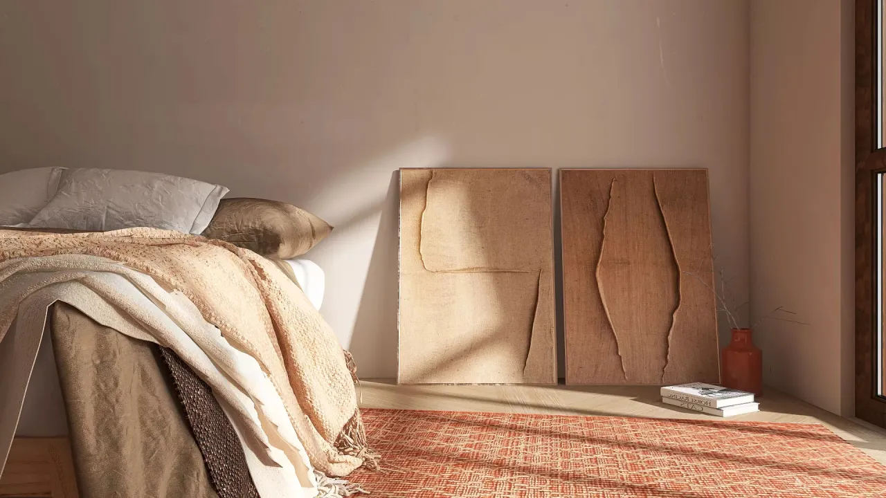 This design is inspired by the wabi-sabi style with a minimalist touch. The furniture is essential, simple and inspired by nature. The neutral colour palette with the addition of warm tones makes these rooms cosy and comfortable.
