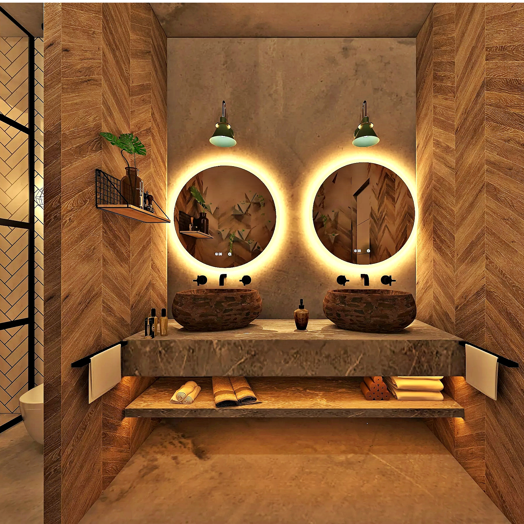 Como podéis observar cuenta con encimera de piedra para 2 lavabos sobre encimera y grifería empotrada al igual que el inodoro.