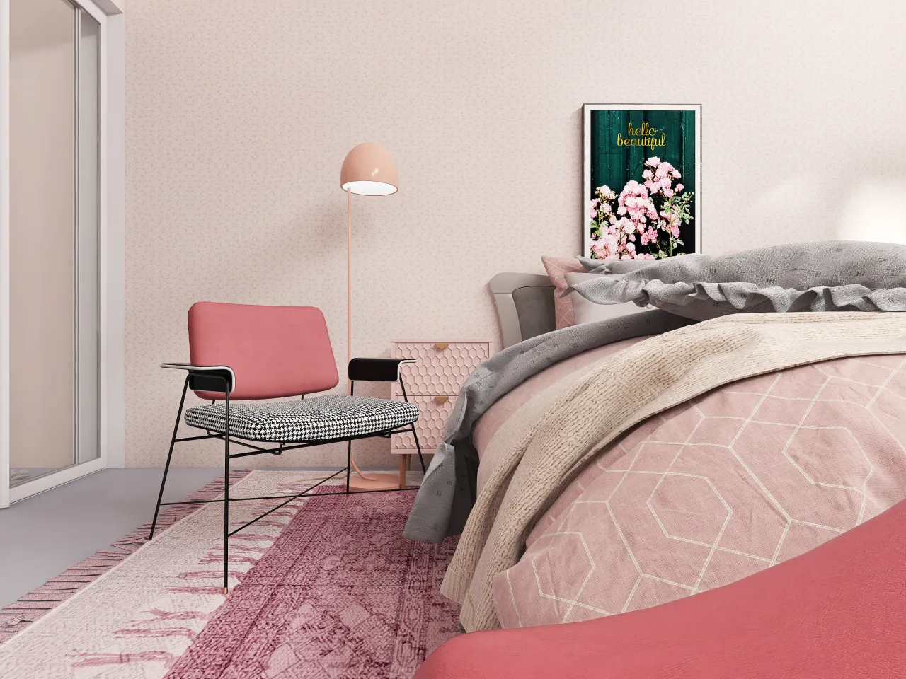 Sakura pink, the most tender and romantic color out of the palette. Different shades of pink or color schemes can transform a room with different styles: it coule be elegant, chic, or cozy, depending on your preferences. Take a look at our demo room rendered in 4K-quality resolution: a stylish pink bedroom infusing with pops of grey color and botanical elements, and an open terrace to enjoy leisure time, along with a Sakura tree as outdoor decoration.