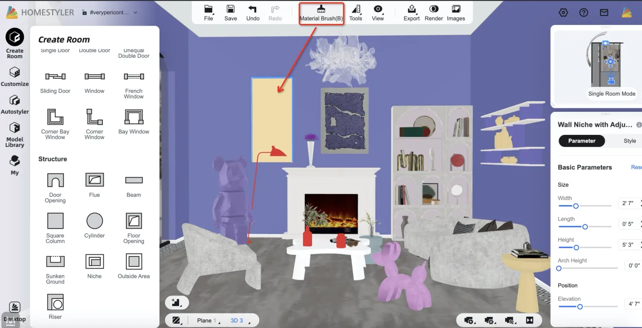 You can use the material brush to absorb the texture you wanted and apply it to the "Sunken Ground" or "Wall Niche".