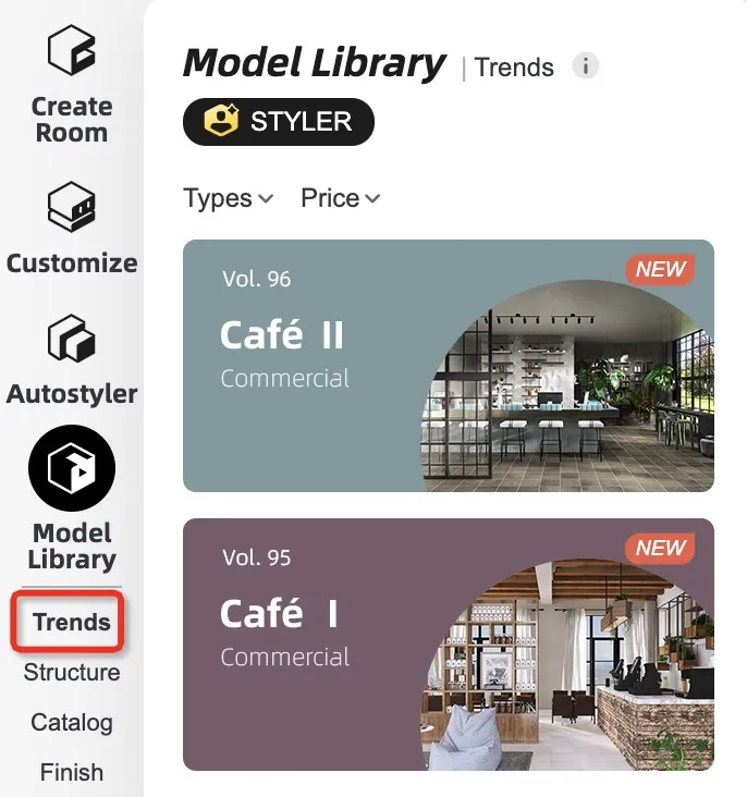 6)Selection of models: You can select the models from the model collection Vol.95 and Vol.96 in the Trends catalog.
