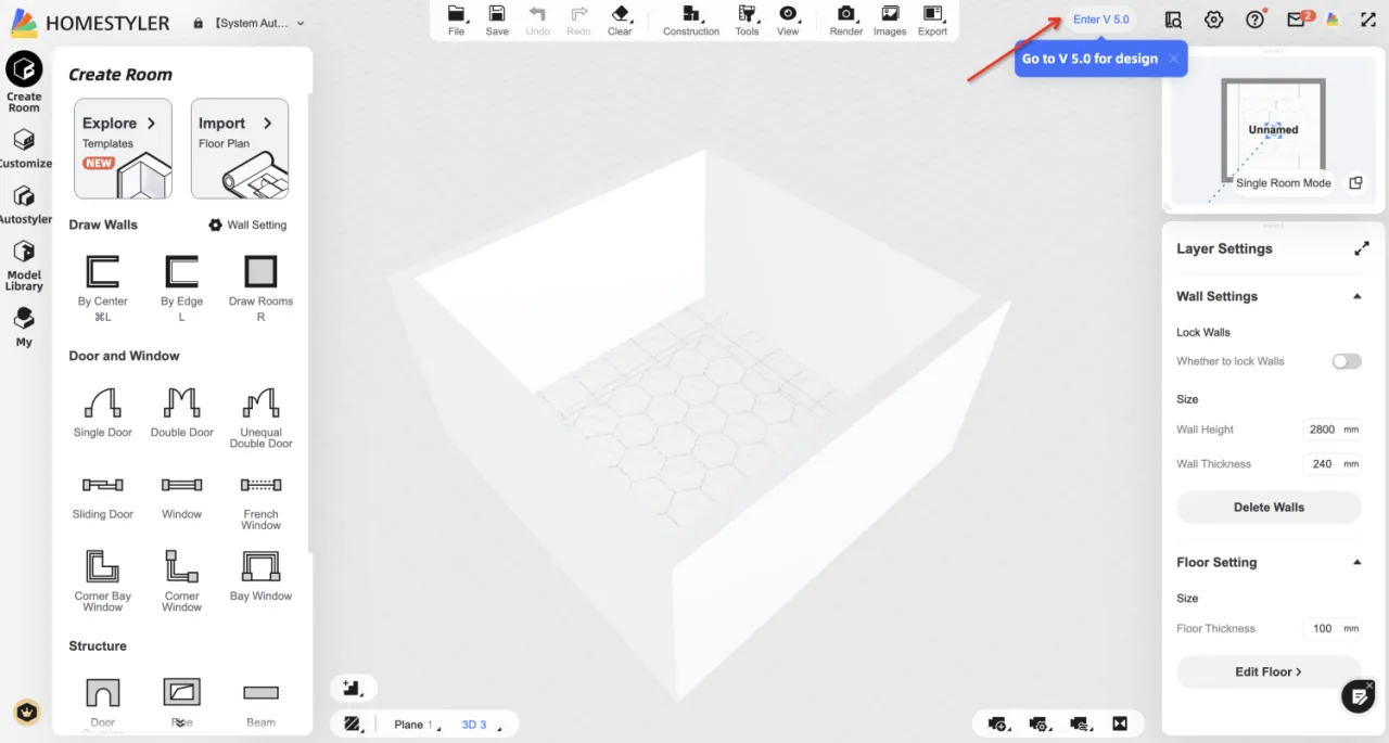 Users who register on or after March 30, 2023 do not need to select a version, and directly enter Homestyler V5.0 for design.