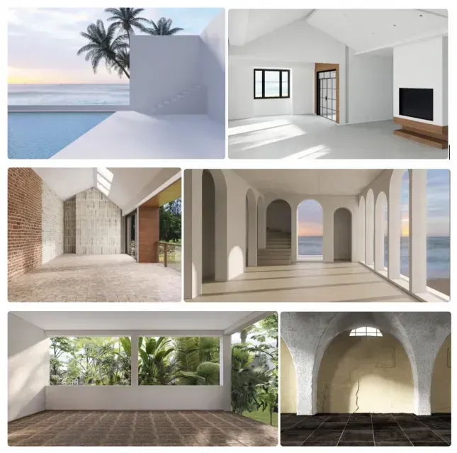 Feel free to draw inspiration from outdoor, indoor, or garden spaces. Below are examples of empty room templates in the Homestyler app.