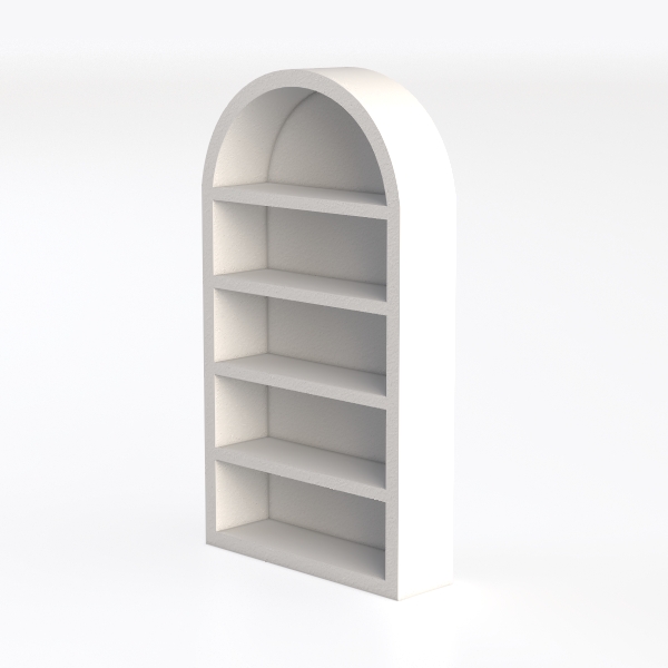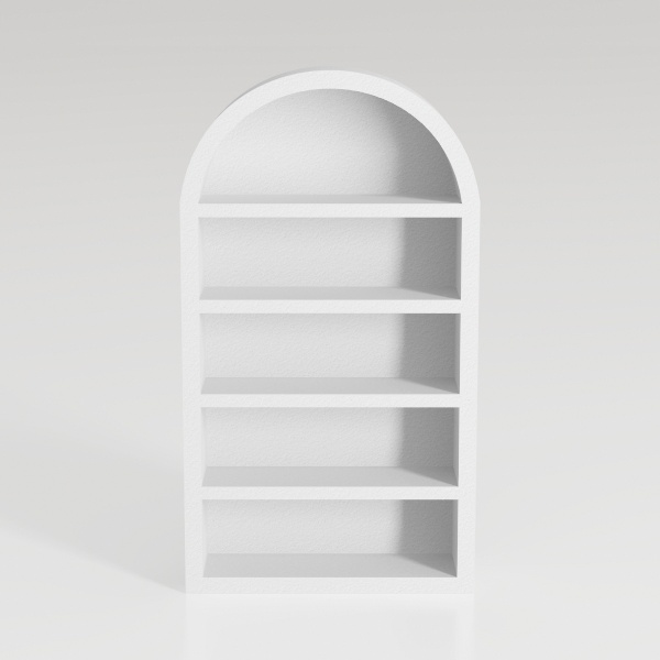 Crafted with a design rooted in architectural archways, this shelving unit blends classic curved elegance with modern minimalism. Its soft, matte white surface feels smooth to the touch, with subtle texture that catches light gently, avoiding harsh glare. The five evenly spaced shelves create a balanced rhythm, while the arched top adds a graceful vertical lift, making it visually light and airy in any room.