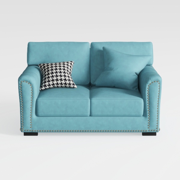 This delightful two-seater sofa captures the essence of contemporary comfort with its vibrant azure upholstery, inviting you to relax and unwind. The sleek lines and plush cushions embody modern elegance, while the subtle sheen of the fabric adds a touch of sophistication. Accented by stylish nailhead trim, this piece makes a striking statement in any living space.