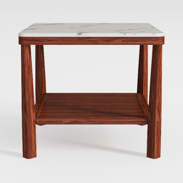 Functionality meets form here: the lower shelf offers handy storage for essentials like remotes or decor, while the durable wooden frame and smooth marble top ensure it’s both practical and long-lasting, making it a thoughtful addition to any living or resting area.