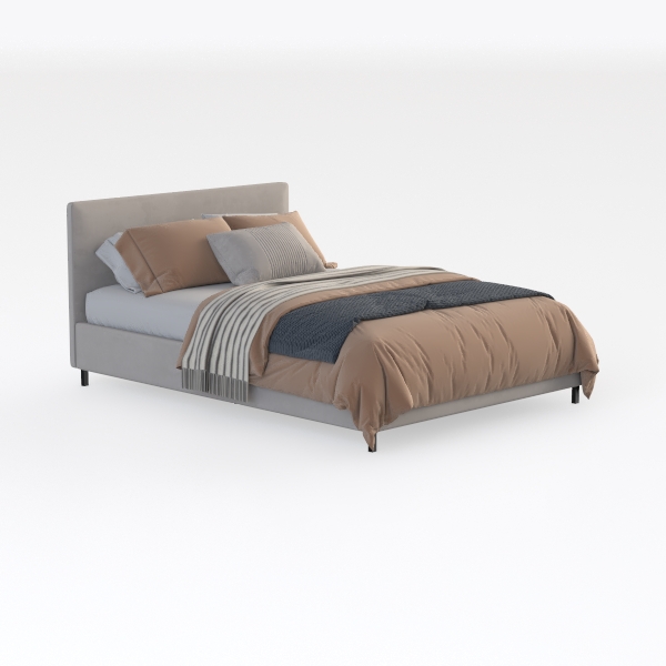Inspired by the serene blend of natural minimalism and soft functionality, this bedframe embodies a design philosophy rooted in quiet elegance. The headboard, upholstered in a warm sand-tone fabric with a subtle, woven texture, feels inviting to the touch—smooth yet with a hint of depth that catches light gently, creating a soft, ambient glow. The bedspread, in a rich terracotta and muted slate blue, cascades over the edges with a relaxed drape, its lightweight yet substantial fabric yielding softly to the body, enhancing the sense of comfort without sacrificing structure.