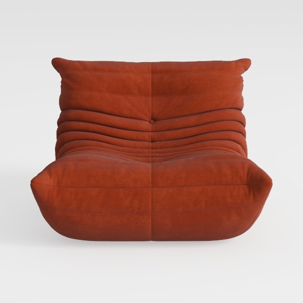 Inspired by organic forms and relaxed living, this plush chair embraces a unique aesthetic that combines comfort and modern design. The rich, warm terracotta hue adds an inviting touch to any space, while the soft texture invites you to sink in and unwind. The gentle curves and wavy lines create a visually striking silhouette, making it a standout piece in any room.