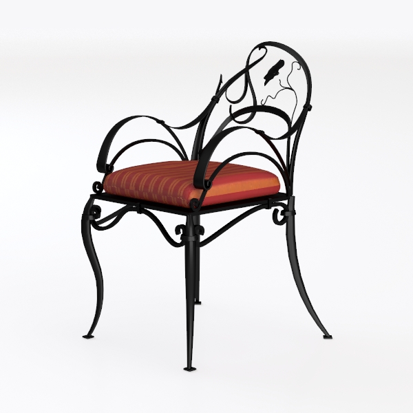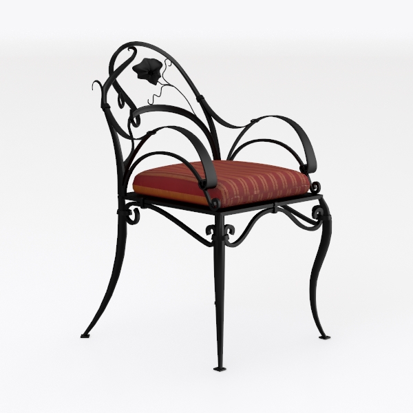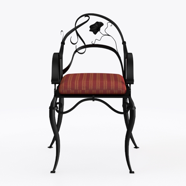 This elegant chair draws inspiration from nature’s organic beauty, with its curved metal frame mimicking the sinuous tendrils of climbing vines and a delicate floral motif at the top of the backrest, evoking the softness of blooming flowers. Crafted from forged iron, the frame boasts a哑光 black finish that highlights its intricate, handcrafted texture—each curve and twist feels intentional, balancing strength with fluidity. The visual contrast between the cool, matte metal and the warm, plush upholstery creates a striking focal point: the seat is padded with a rich, velvety red-and-gold striped fabric, its soft texture inviting and tactile, offering a gentle counterpoint to the chair’s structured silhouette.