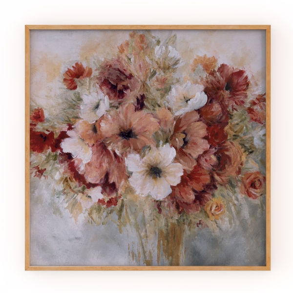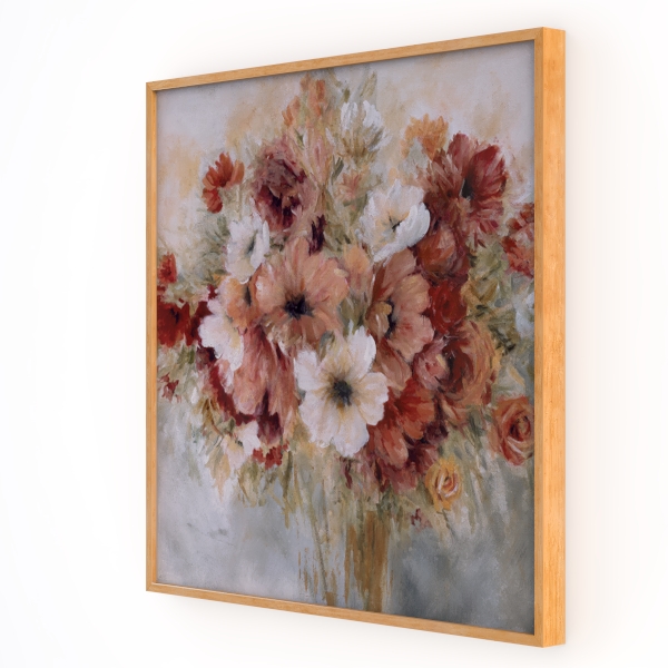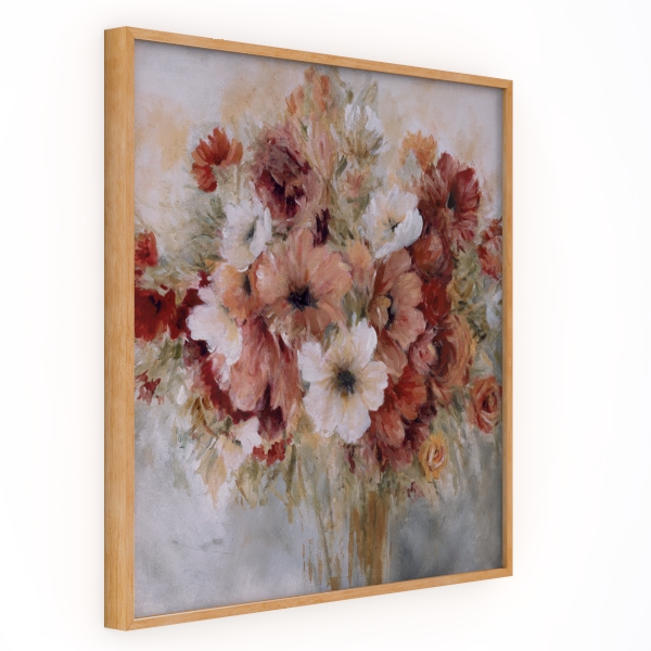 Maroon Elegance Floral Realistic Canvas Wall Art, Gold Floater Frame, 36"x24"