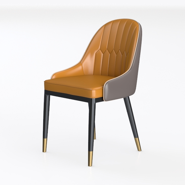 Practical yet visually arresting, the chair combines durability with comfort—its easy-to-clean leather upholstery resists daily wear, while the sturdy metal frame ensures long-lasting sturdiness. Every detail, from the geometric back paneling to the gold-accented legs, speaks to intentional design, making it a standout piece that transforms any seating area into a space of understated luxury.