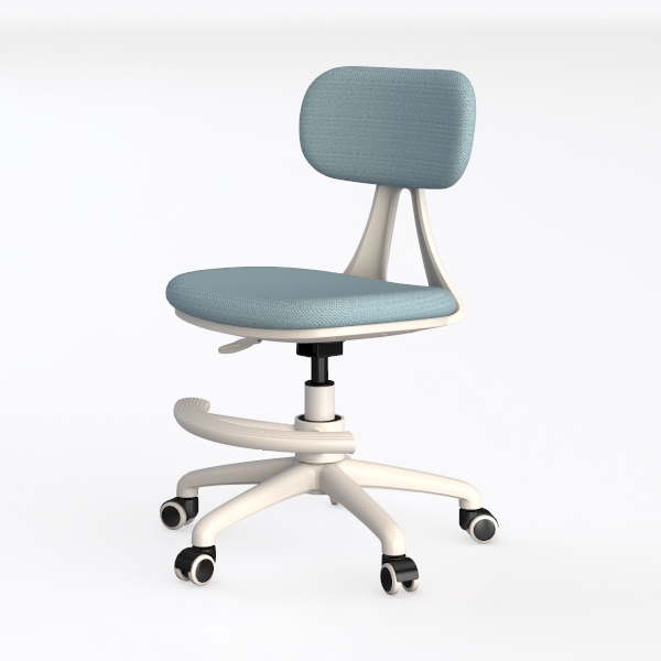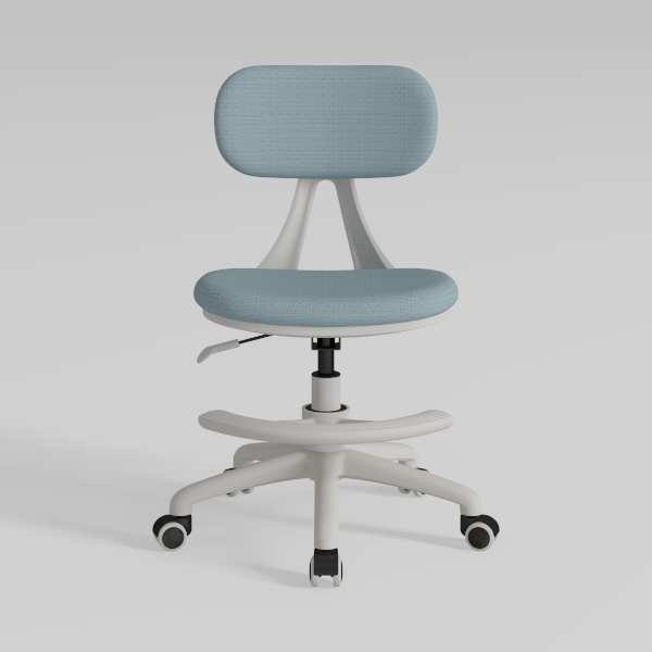 Designed to blend practical functionality with modern aesthetic appeal, this chair takes cues from the desire to craft a workspace that feels both supportive and visually serene. The light blue upholstery, woven from a soft, breathable fabric, offers a gentle and inviting touch, while the smooth, matte white frame—with its curved, minimalist lines—adds a crisp, contemporary contrast. Its uncluttered silhouette, free of unnecessary details, ensures it complements various decor styles, from Scandinavian minimalism to sleek modern setups.