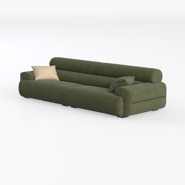 Immerse yourself in the inviting allure of this contemporary sofa, inspired by nature's calming hues. The rich green upholstery evokes a sense of tranquility, combining style with a soft, plush texture that invites relaxation. The contrast of smooth and subtly grooved fabrics enhances its visual appeal, making it a perfect centerpiece for any modern living space.