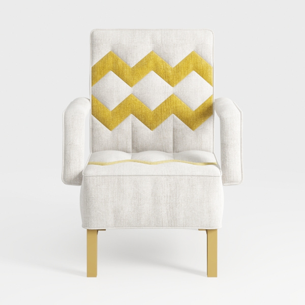 Introducing a stylish accent chair that brings a touch of contemporary elegance to any interior. Inspired by modern design trends, this piece features a chic zigzag pattern in a vibrant gold hue, expertly contrasted against a soft, neutral fabric that invites cozy relaxation. The tactile quality of the upholstery is not only visually appealing but also incredibly inviting, making it a perfect spot to unwind after a long day.