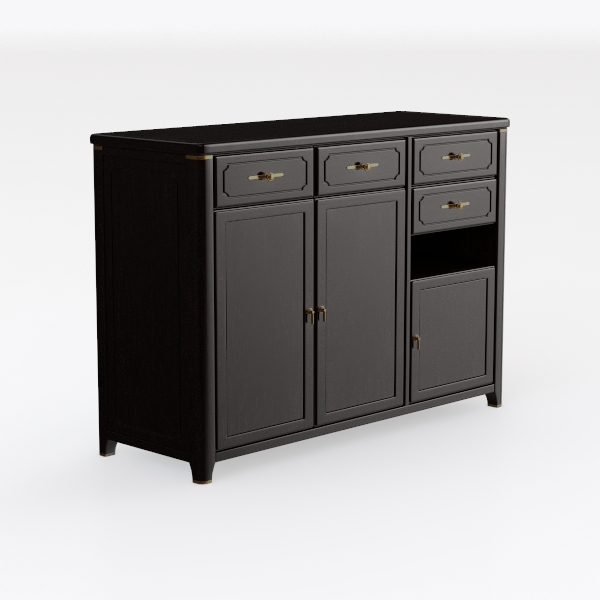 Perfect for a living room as a console table, a dining space as a sideboard, or an entryway to organize essentials, it complements diverse aesthetics: it pairs seamlessly with modern minimalist setups (think paired with a sleek leather sofa and a sculptural ceramic vase) or warm traditional styles (such as a vintage rug and framed family photos). The polished brass hardware—on the three drawers and two cabinet doors—adds a touch of refined luxury, its golden hue contrasting beautifully with the dark wood and enhancing the piece’s overall sophistication.