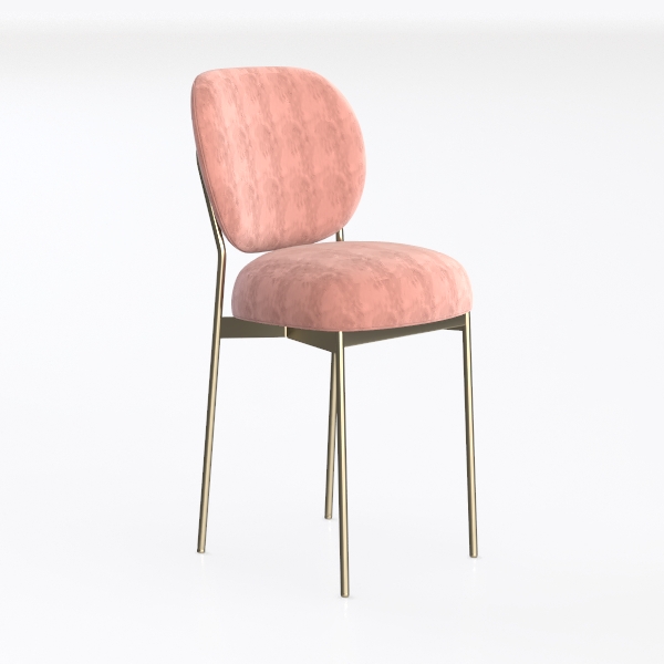 The velvet fabric, with its subtle sheen and dense, buttery texture, offers a tactile delight—soft to the touch yet surprisingly resilient, making it ideal for daily use. The contrast with the chair’s slim, gold-tone metal legs is striking: the legs, tapering subtly toward the floor, balance lightness with stability, their warm metallic hue complementing the pink’s softness and adding a touch of understated luxury.