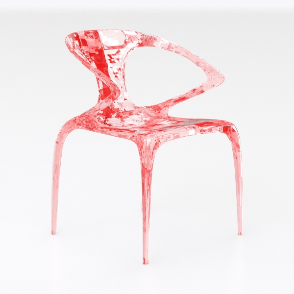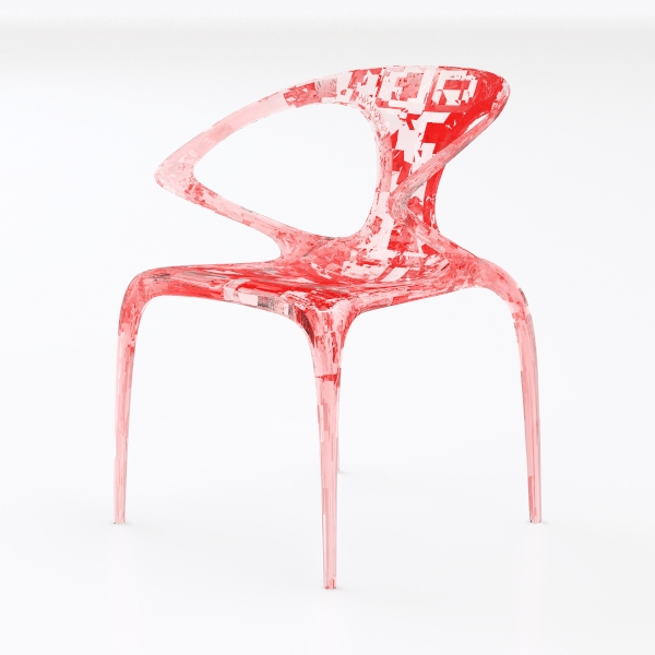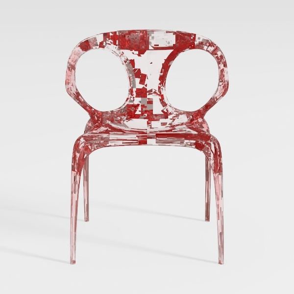 This striking piece draws inspiration from geometric abstraction and architectural minimalism, blending bold form with delicate transparency. Its design features flowing, organic curves that define the backrest and armrests, creating a sense of movement as light plays across its surface. The chair’s body is crafted from a high-quality transparent material, infused with subtle red undertones that shift and glow depending on the light—from deep crimson to soft rose, adding layers of visual interest without overwhelming simplicity.
