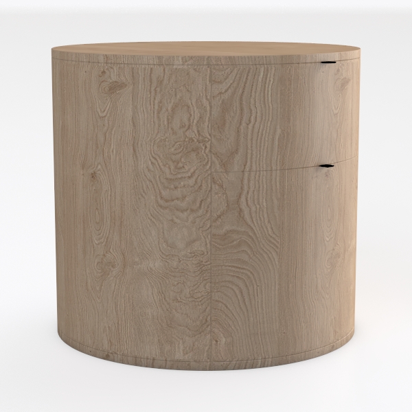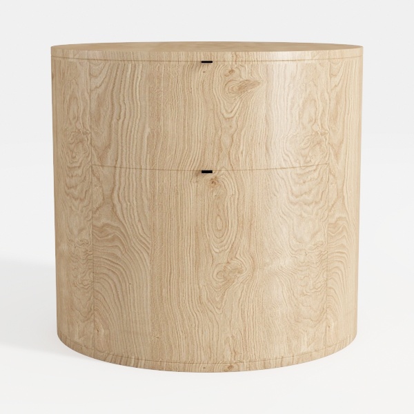 Perfect for a Scandinavian, Japanese minimal, or contemporary setting, it serves as an elegant side table in a living room—paired with a plush sofa and a potted fern—or a functional nightstand in a bedroom, where its compact size fits seamlessly without overwhelming the space. The circular shape maximizes space efficiency, while two integrated drawers offer practical storage for everyday essentials like remotes, books, or toiletries. Its stable base and rounded edges ensure both durability and safety, balancing utility with aesthetic appeal.