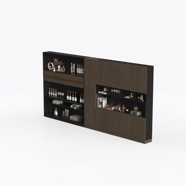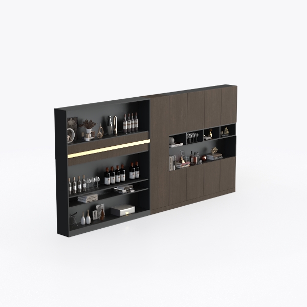 Ideal for modern minimalist or industrial-style living rooms, this cabinet system pairs beautifully with marble or terrazzo side tables, metallic floor lamps, and soft-textured sofas. In an open-concept kitchen, it serves as a functional yet elegant room divider, seamlessly integrating with pendant lights and kitchen islands. The design prioritizes versatility: adjustable shelves allow for customization to accommodate varying item sizes, while the deep, wide compartments provide ample space for everything from wine collections to cookbooks. The combination of open and closed storage ensures that daily essentials stay organized, while decorative pieces on display add personality to the space, making it a focal point for both relaxation and entertaining.