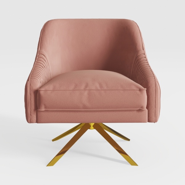 This elegant armchair draws inspiration from mid-century modern design with a contemporary twist, balancing nostalgic charm and modern minimalism. Its soft, velvety upholstery in a warm blush hue feels incredibly plush to the touch, inviting you to sink into its generous seat depth for instant comfort. The chair’s structure is defined by a sleek, curved silhouette, with subtle channel tufting along the arms that adds texture without overwhelming simplicity.