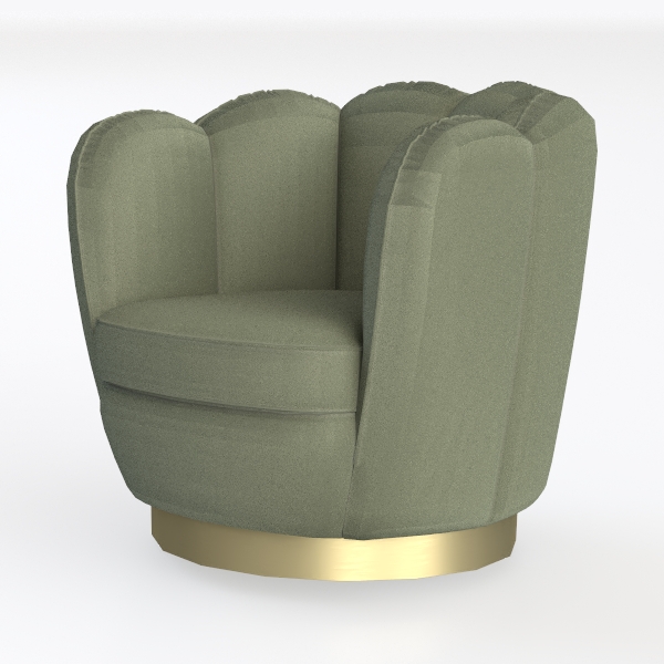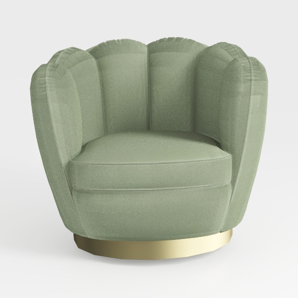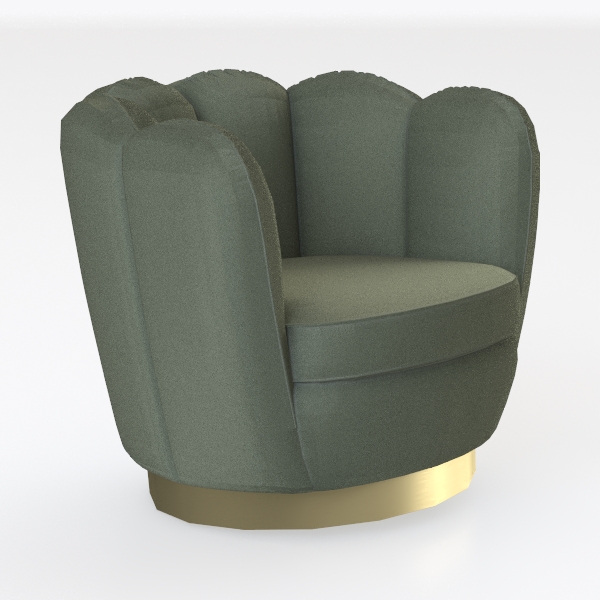 Inspired by the elegance of nature, this plush armchair combines modern design with a touch of sophistication. Its soft, muted green fabric exudes tranquility, inviting relaxation and comfort. The exquisite upholstery features gentle curves that echo the shapes found in blooming flowers, while the sleek gold base adds a hint of glamour.