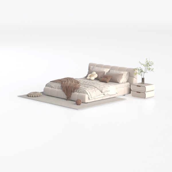 Inspired by contemporary aesthetics, this bed embodies a perfect blend of comfort and style. Its soft, plush upholstery invites you to unwind, while the subtle stitching details add a touch of sophistication. The gentle color palette of whites and muted tones creates a calm ambiance, making it an ideal centerpiece for a serene bedroom.