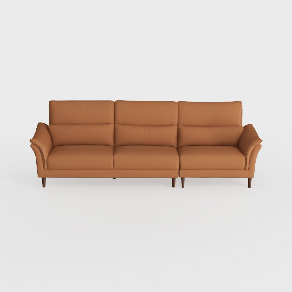 Valencia Nathan Nappa Leather Couch - 4 Seats with 2 Chaises - 100% Full Aniline Leather Modern Sectional Sofa for Lounge and Living Room Solid Wood Frame and High-Resilience Foam (Caramel Brown)