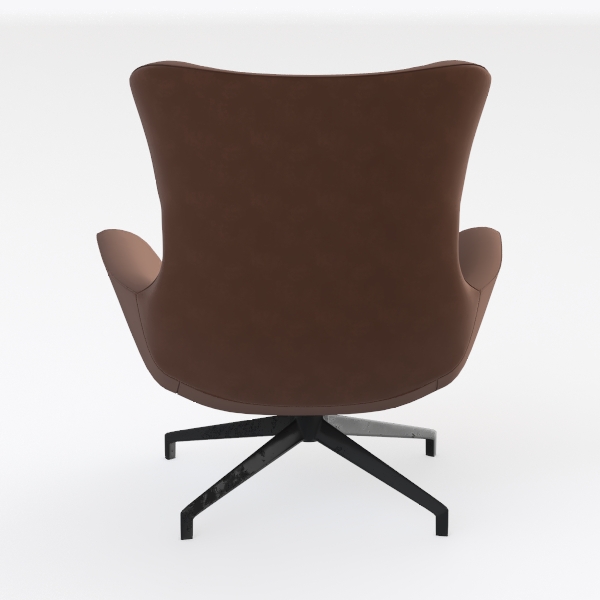 Visually, its flowing backrest and wide, rounded arms create a sense of calm, with the neutral brown hue grounding the design while the black, angular five-point base adds a sleek, modern edge. This balance of softness and structure makes it a versatile piece that can anchor a minimalist living room, a cozy reading corner, or even a small office nook.
