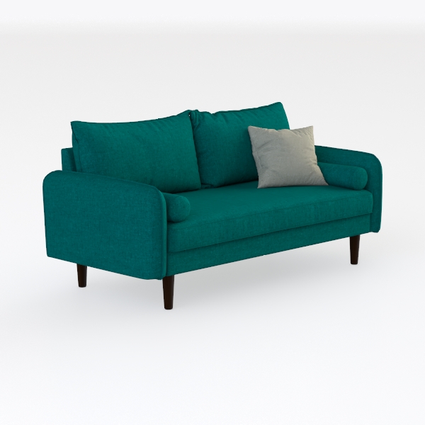 This elegant sofa draws inspiration from the serene beauty of lush, emerald foliage, blending mid-century modern simplicity with a touch of organic warmth. Its deep teal upholstery, softly textured to the touch, invites relaxation, while the plump, rounded cushions and gently curved armrests add a cozy, inviting silhouette. The color, rich yet balanced, catches light subtly, infusing the space with a vibrant yet calming energy that feels both timeless and fresh.