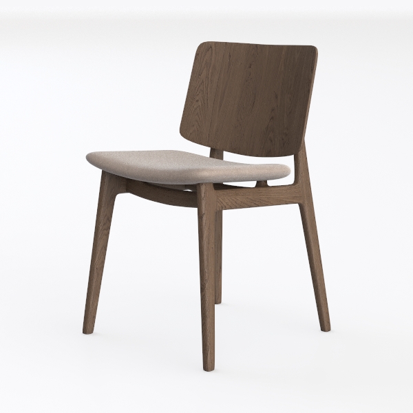 Inspired by mid-century Scandinavian design, this chair merges organic warmth with minimalist elegance. The rich oak wood grain on the backrest and legs offers a smooth, tactile experience, while the soft off-white upholstery adds gentle contrast. Clean lines and tapering legs create a balanced, airy silhouette, enhancing any space. Ideal for a cozy dining room or modern living area, pairing beautifully with marble tabletops and woven rugs. A contoured seat ensures comfort during long meals, with a lightweight frame for easy movement.