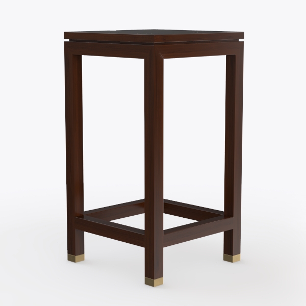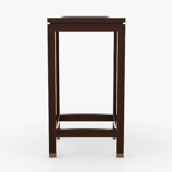 Inspired by minimalist Asian design, this elegant piece blends clean lines with functional form. Its smooth, dark wood surface features subtle grain details, complemented by cool metal accents at the base that add luxury. Perfect for a modern living room or study, pairing beautifully with marble or wooden coffee tables. The narrow profile saves space, while the open lower shelf offers handy storage for potted plants or decor.