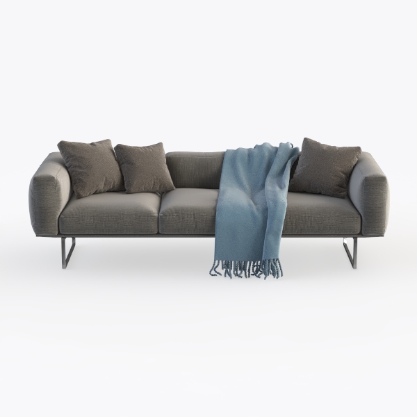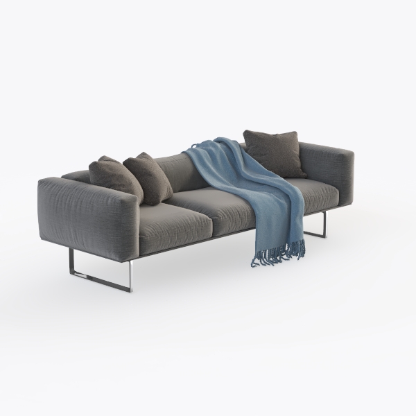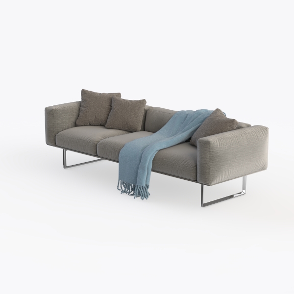 Inspired by the serene simplicity of Scandinavian design, this sofa marries understated elegance with everyday comfort. Crafted from a soft, textured gray fabric, its surface feels inviting to the touch—plush yet resilient, as if designed to cradle you after a long day. The neutral hue acts as a calming backdrop, while two matching gray throw pillows and a light blue knit blanket draped casually over one arm add subtle layers of warmth and a gentle pop of color, preventing the space from feeling flat. Sleek, thin metal legs elevate the piece, giving it an airy, weightless quality that makes the sofa feel both substantial and unobtrusive.