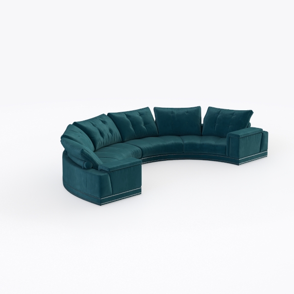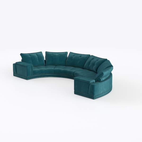 Inspired by the fluid lines of organic forms—think gentle waves or rounded architectural arcs—this sofa blends mid-century modern warmth with contemporary elegance. Its rich teal velvet upholstery shimmers softly under light, catching the eye with a subtle, sumptuous sheen, while the smooth, curved silhouette wraps around like a cozy embrace, banishing sharp edges for a soft, inviting presence. Tufted details on the back and seat cushions add textural depth, their neat buttoned patterns inviting fingers to brush over the plush fabric.