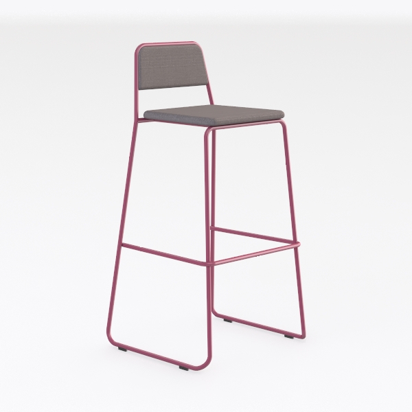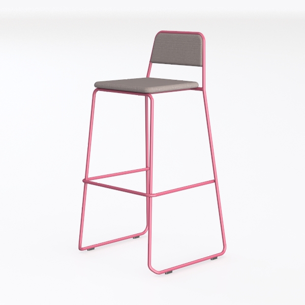 Inspired by the blend of sleek lines and practical design, this bar stool features powder-coated pink steel legs with a smooth, lightweight feel. The soft gray upholstery adds warmth, making the overall silhouette elegant yet inviting. Ideal for modern kitchen islands or minimalist bars, it pairs beautifully with marble countertops and wooden cabinets, and the contoured back with sturdy frame ensures excellent support for long hours of use.
