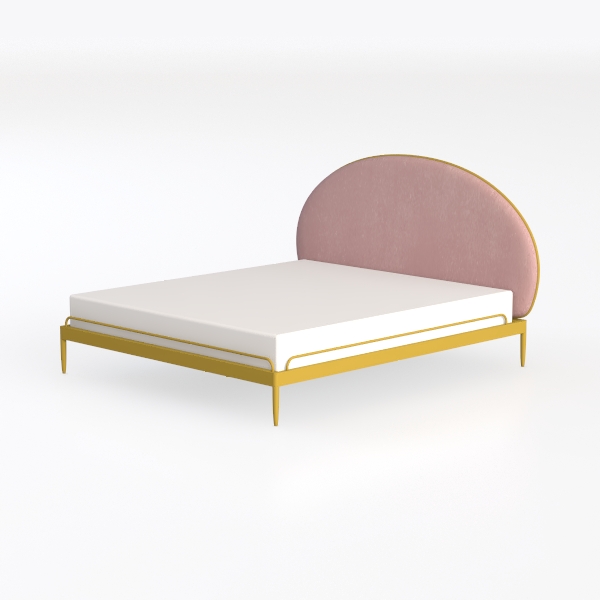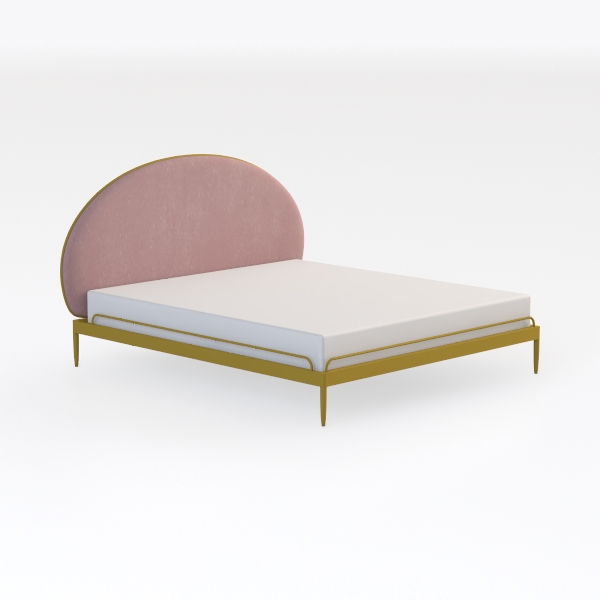 Inspired by soft organic curves, this bed blends cozy warmth with modern elegance. A plush velvet headboard in blush pink invites gentle contact, while the sleek gold metal frame adds crisp contrast. Ideal for modern minimalist or contemporary bedrooms, it pairs beautifully with marble nightstands and metallic accent lamps. Sturdy yet lightweight, the frame ensures stability, and the curved headboard provides excellent back support for restful nights.