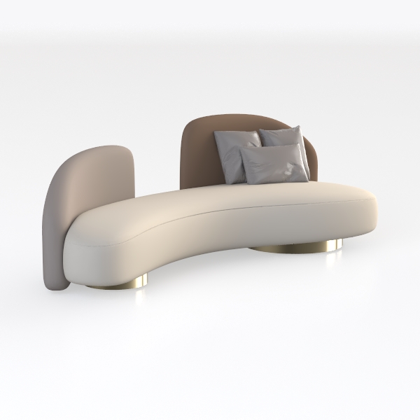 This sofa merges organic softness with contemporary sophistication, drawing inspiration from the gentle curves of natural landscapes—think rolling hills or flowing water—transforming ordinary seating into a piece that feels both grounding and ethereal. Its main body is wrapped in a buttery-soft off-white upholstery, its texture细腻yet resilient, inviting a light touch and promising lasting comfort. A warm taupe backrest adds depth, curving slightly to cradle the upper back, while sleek gold-tone metal legs elevate the design, creating a delicate balance between stability and airiness.