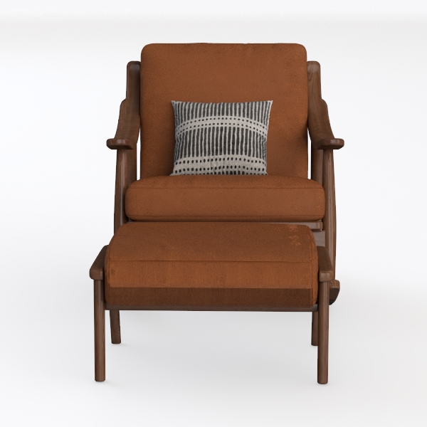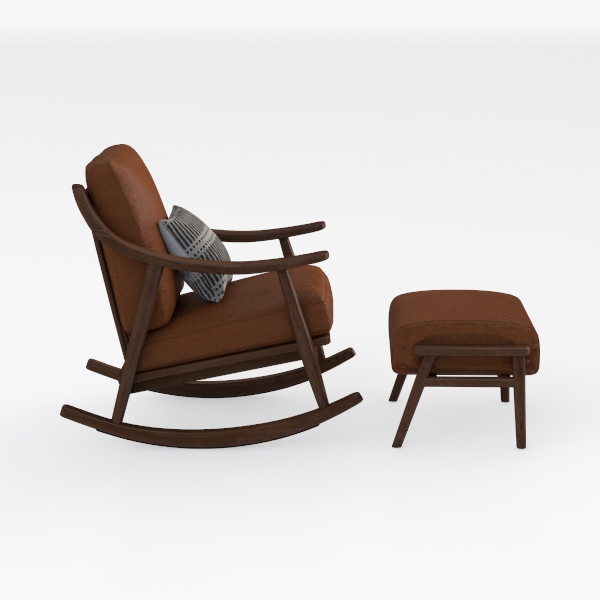 Inspired by mid-century modern design, this rocking chair and ottoman combine warm orange upholstery with smooth wooden frames. Soft, textured fabric ensures cozy seating, while curved wood lines add elegant charm. Ideal for minimalist or retro living rooms, pair with marble tables and metal lamps. The wide seat and gentle rocking motion provide ultimate relaxation, perfect for reading or unwinding.